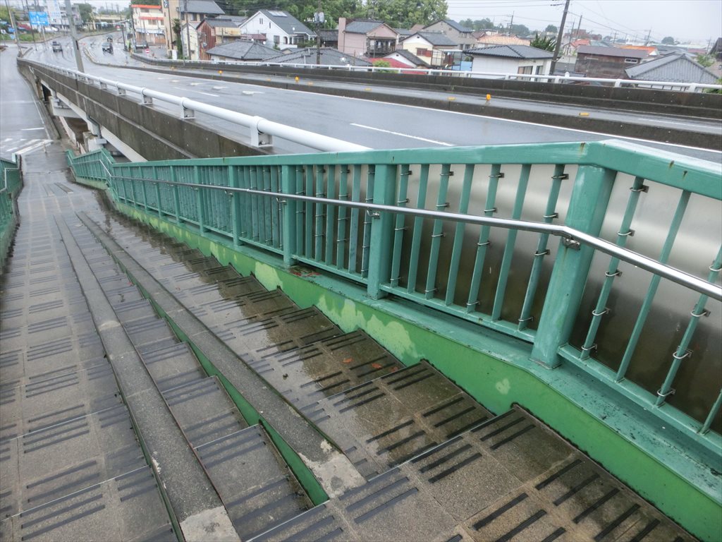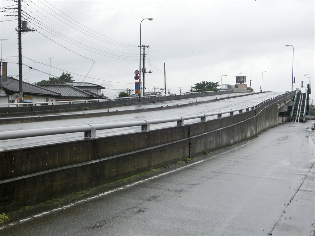 「千代田3丁目」交差点から「前原2丁目」交差点の方へ南下、高崎線路の手前。 写真の歩道橋を上がる前、左側に公園があります。