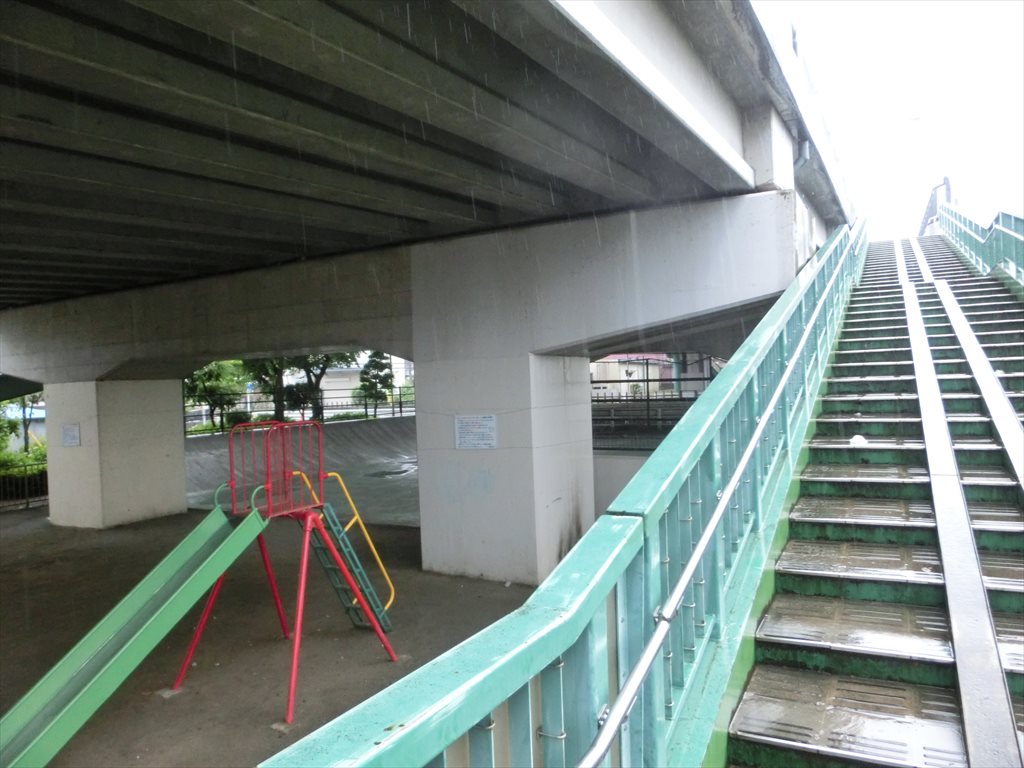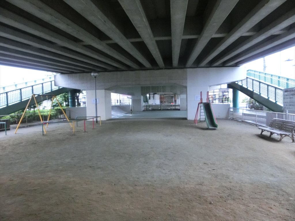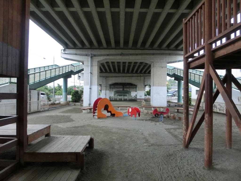 公園は線路を挟んだ向こうまで続いています。こちらは線路の北側
