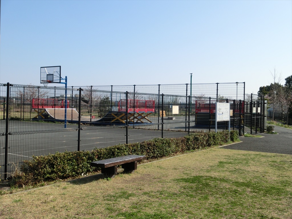 右端のバスケットコートとスケートパーク部分が多摩梨パーク
